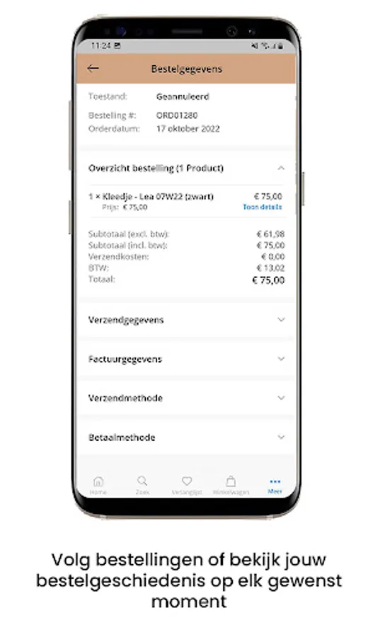 - Volg bestellingen of bekijk jouw bestelgeschiedenis op elk gewenst moment
