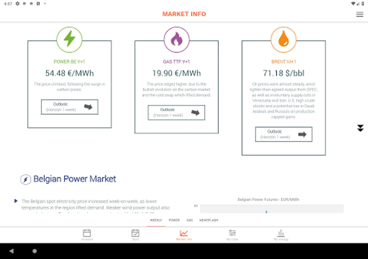 - Consult actual spot market prices like Belpex and Elia imbalance prices.