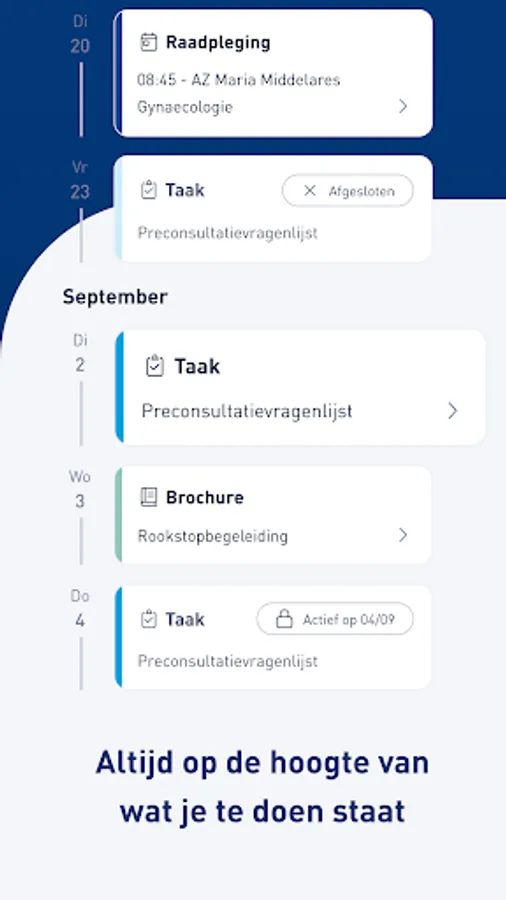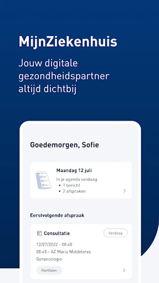 AZ Maria Middelares is here for you. Throughout your journey, whether it is short or long, we always want to support you as best as possible. In addition to the physical contact moments in the hospital, we also want to exchange information with you digitally quickly and securely. Our goal? Get to know you even better and follow up, with a view to high-quality customized care.