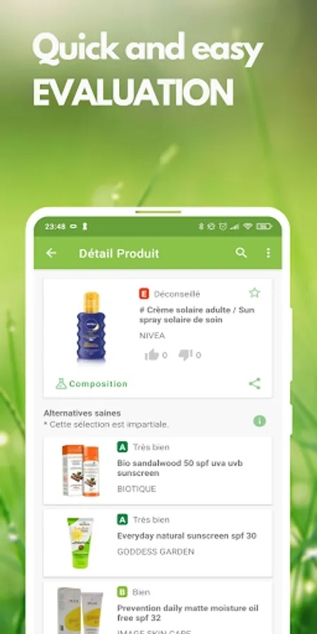 The application indicates via a very simple 5 color code the impact that a product can have on your health and on nature (Carcinogenic, Endocrine disruptor, Allergen, Irritant, Pollutant ...). The scoring method is based on the analysis of all the ingredients of a product. Each ingredient is assigned a risk level based on the state of science to date.