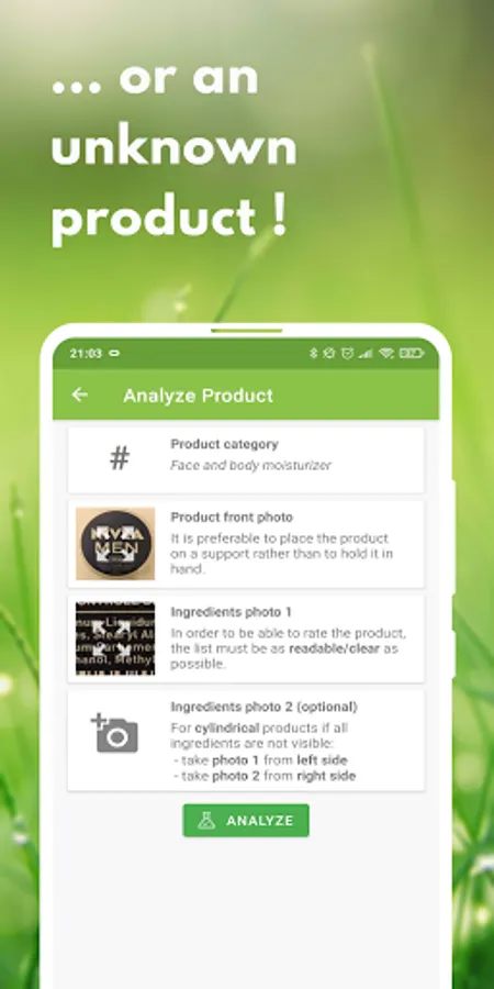 No barcode? You can also analyze a product using a photo of its list of ingredients. (useful for checking the composition of a product on an online sales site)