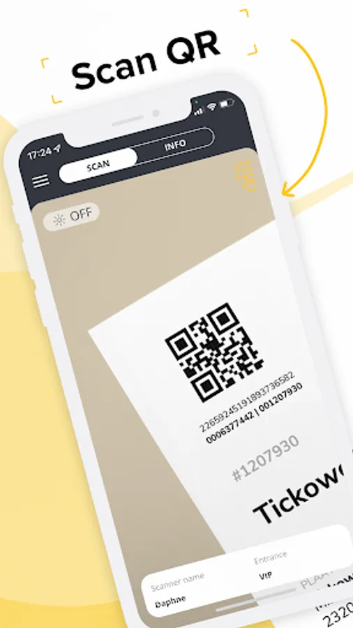 Thanks to the Tickoscan app you take matters into your own hands: after your smartphone has been linked to your event, you can easily scan all Tickoweb tickets with QR or barcode. You will receive immediate feedback whether the voucher is valid or not.