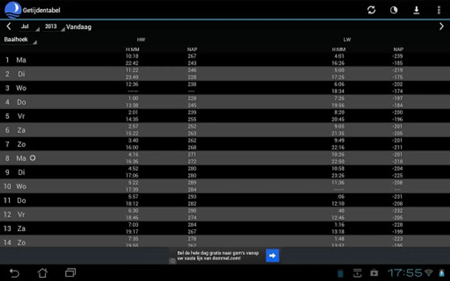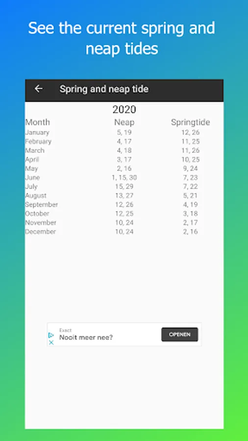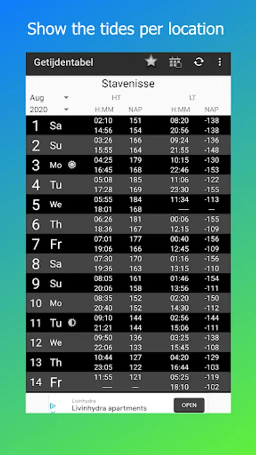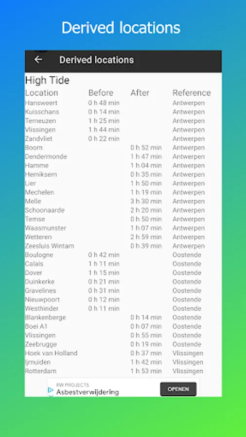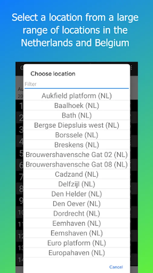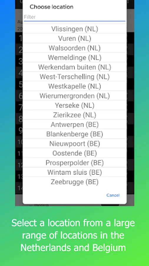 An application to see the tides at the Dutch and Belgian Coast. It is possbible to switch between different locations