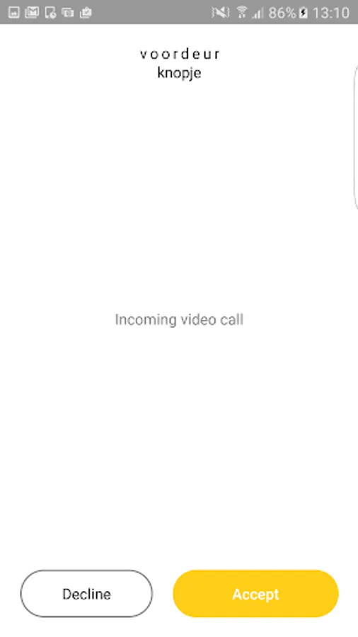 When you answer the call, you will see the visitor and be able to have a conversation. You can also choose to ignore a conversation. You can mute your smartphone's microphone during a conversation. The orientation of your phone will determine the dimensions of the image. When holding your phone horizontally, the image of your visitor will be displayed in widescreen. If the network quality is not good enough to have a video conversation, audio communication will automatically take over and the image will be suppressed.