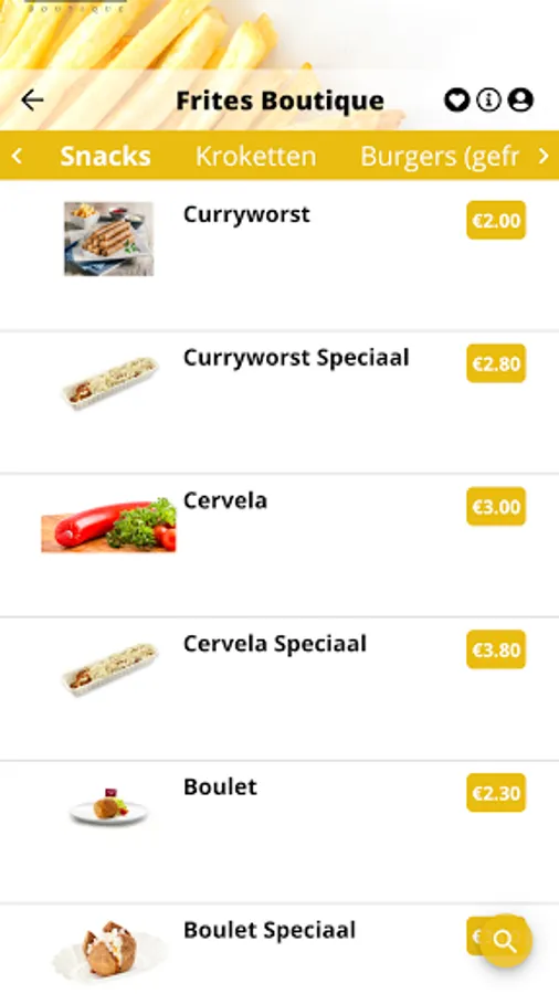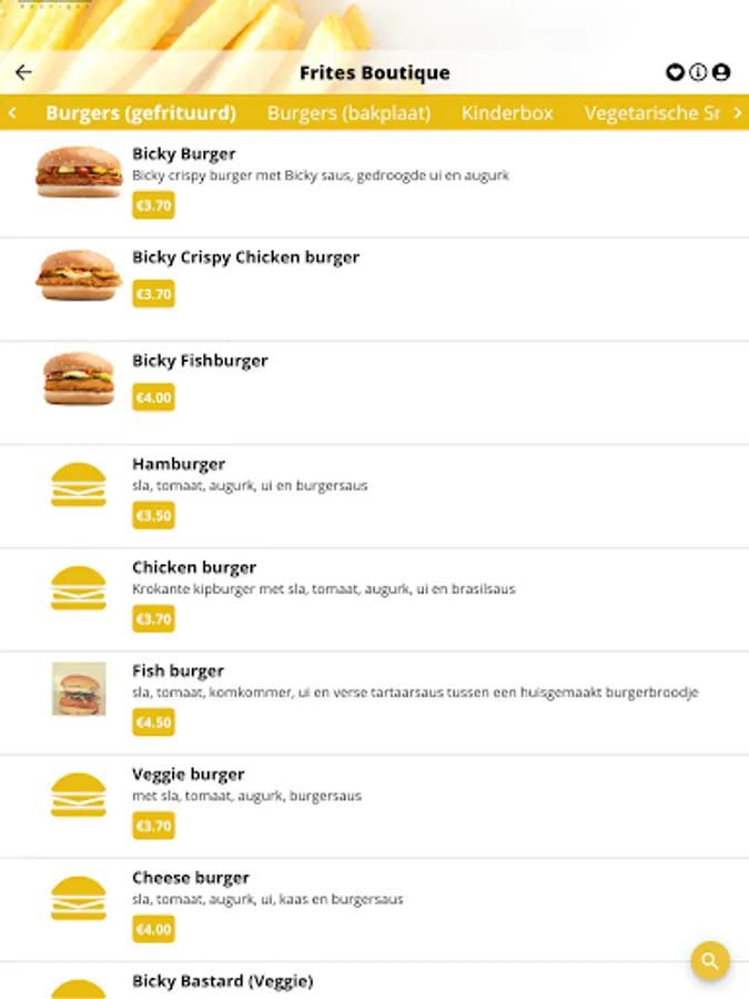 Delicious crispy fries, fresh homemade American style burgers, snacks, homemade stew / vol-au-vent, artisan cheese / shrimp croquettes etc .. !!