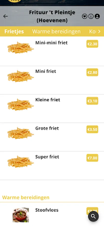 Order quickly and easily via our app at Frituur 't Pleintje (Hoevenen)