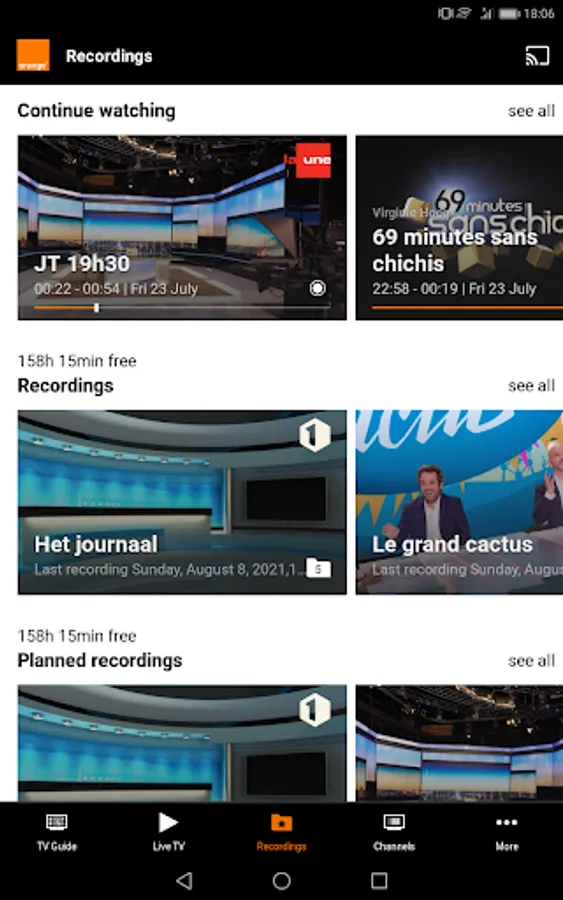 Orange TV Plus is a free TV application offering the following features to TV Box and TV Lite customers from Orange Belgium: