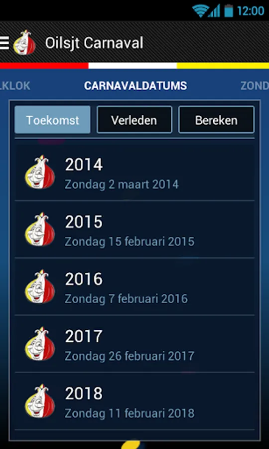 Consult a list of carnival dates or let the app calculate the date itself (both in the past and in the future).