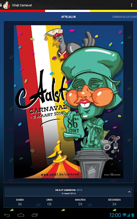 This is a must-have app for the purebred carnavalist perfectly tells you how long it will take until the next Oilsjt Carnival (Carnaval Aalst).