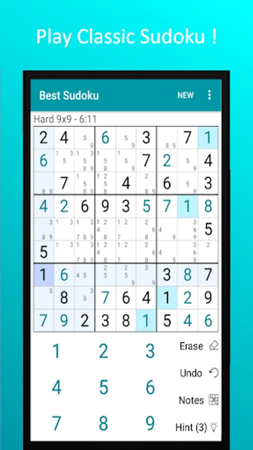 Best Sudoku is a challenging Sudoku app, offering various difficulty levels and two different grid sizes: 9x9 and 16x16.