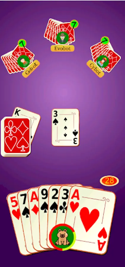 The goal of this simple casual card game is to reduce your cards score at hand, below a threshold value, before your opponent can do so.