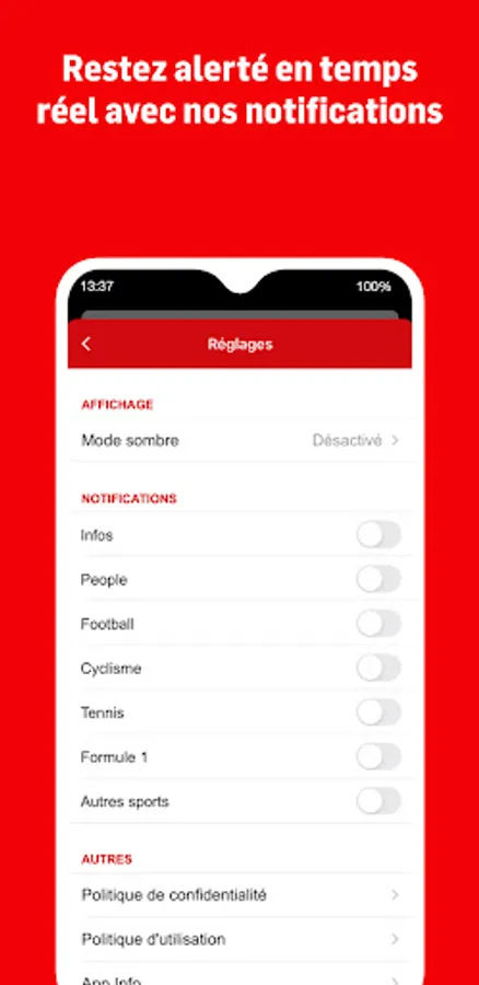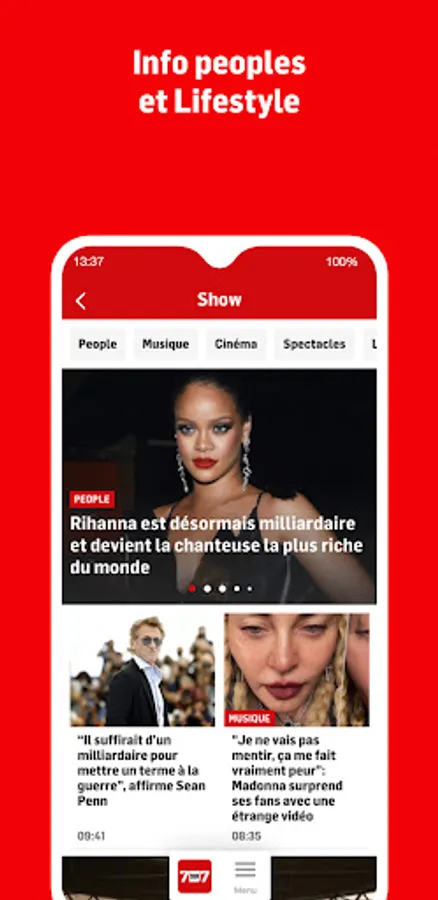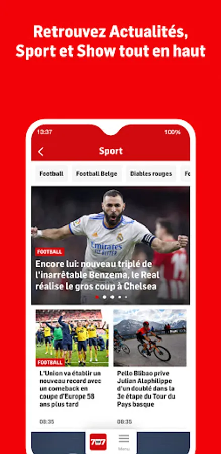 At the very top of our redesigned app, you can access the latest news and videos, Showbiz news, Sports, all the news and also our Lifestyle section with one click. Urgent information? We will keep you informed in real time via our free smartphone notifications.