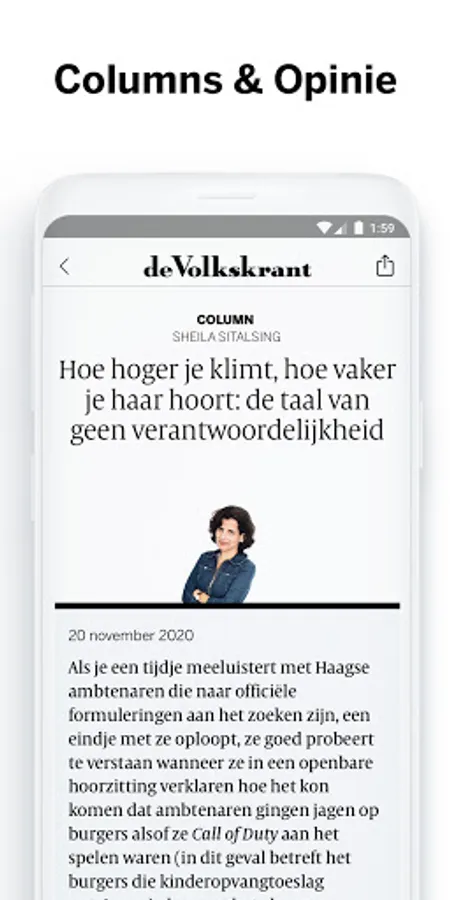 The latest news, background stories, the newspaper as it is printed and the Digital Edition now in one app from de Volkskrant on your smartphone.