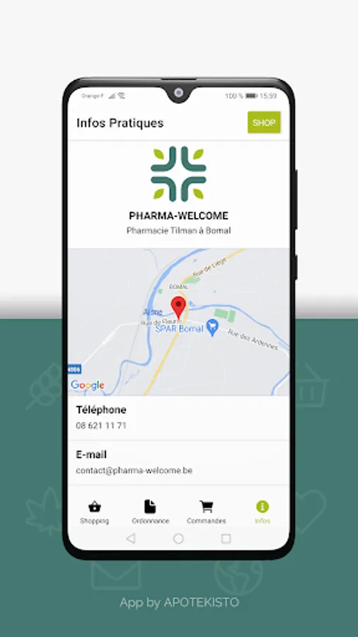 Find the application of Pharmacy Tilman - Bomal, Belgium.