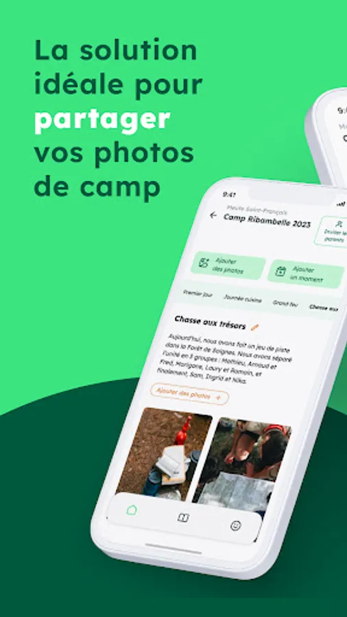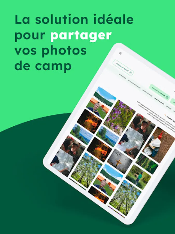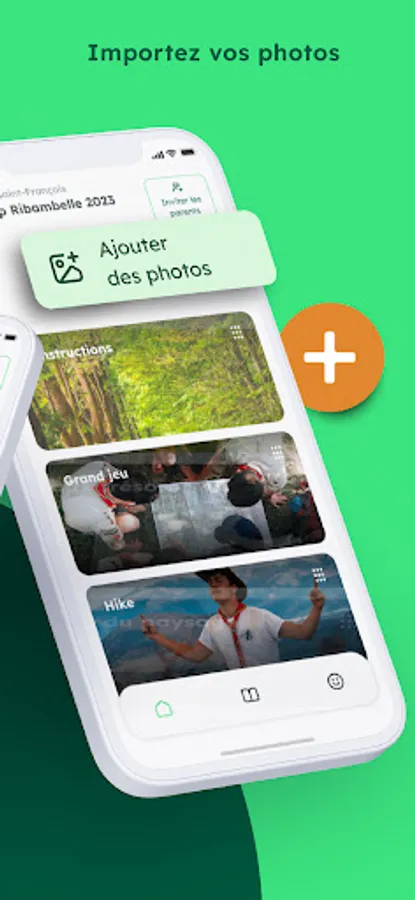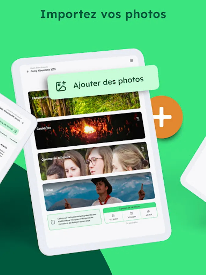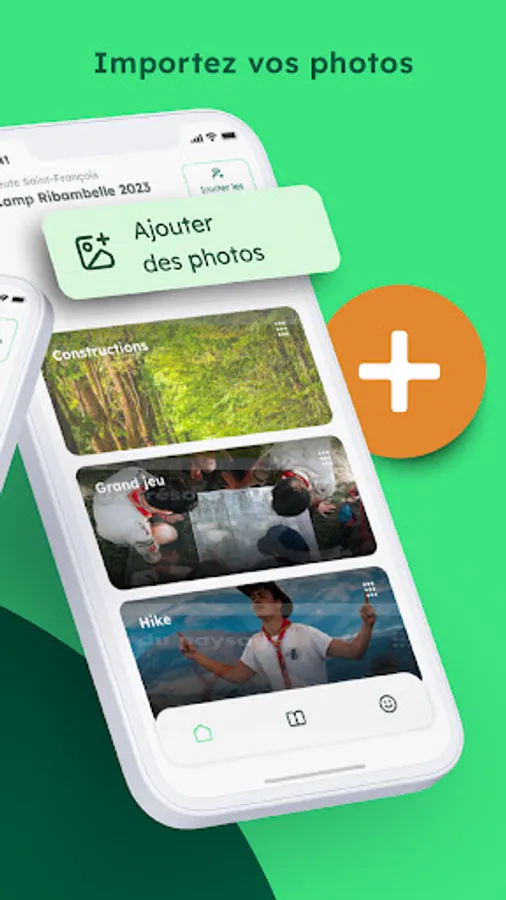 You import your camp photos by classifying them by ""moments"" (constructions, hike, cooking contest, ...)