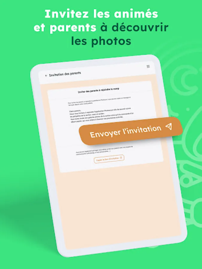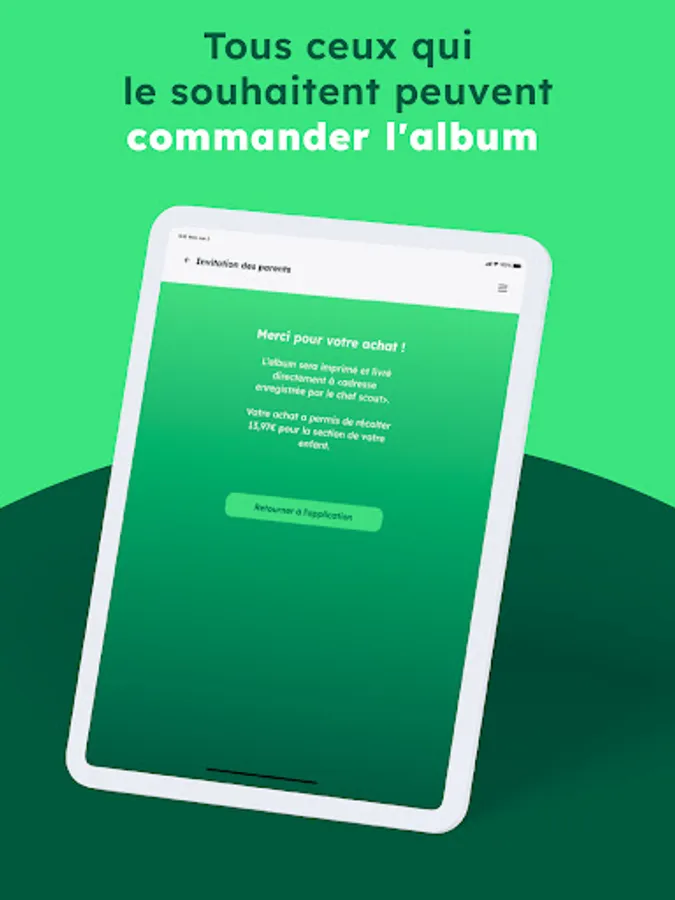 You share a secure link with them that allows them to come and discover the photos of the camp and to order the album if they wish.