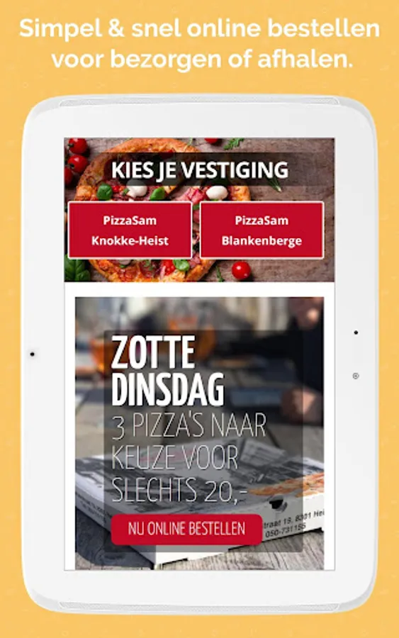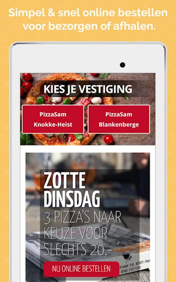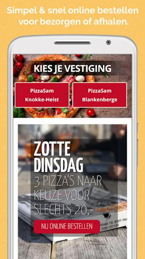 At Pizza Sam find the best pizza in Knokke-Heist, Blankenberge and surroundings! With our new app, you can easily from your lazy couch order our delicious cuisine and secure online checkout. Earn points with every order and use them to add free meals on your next order!