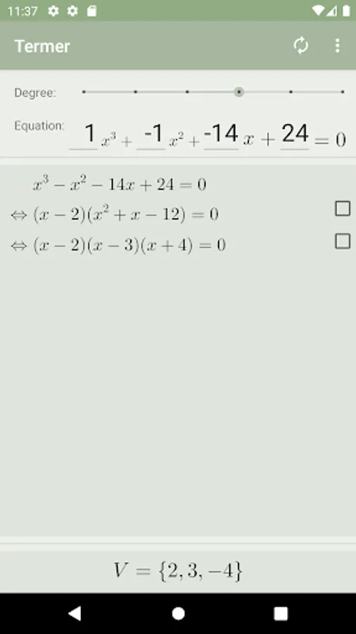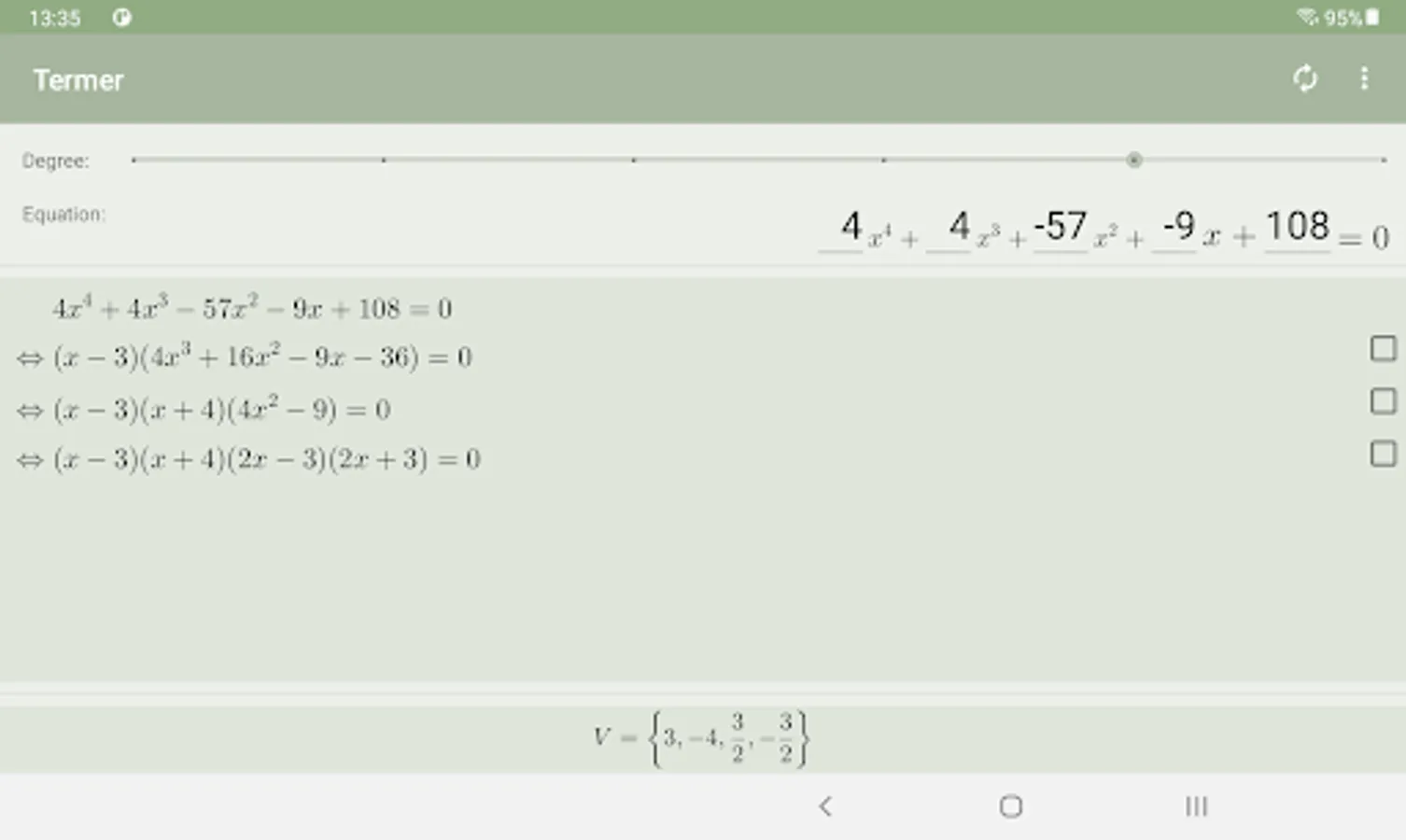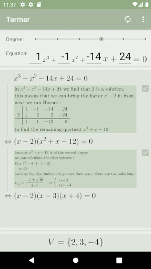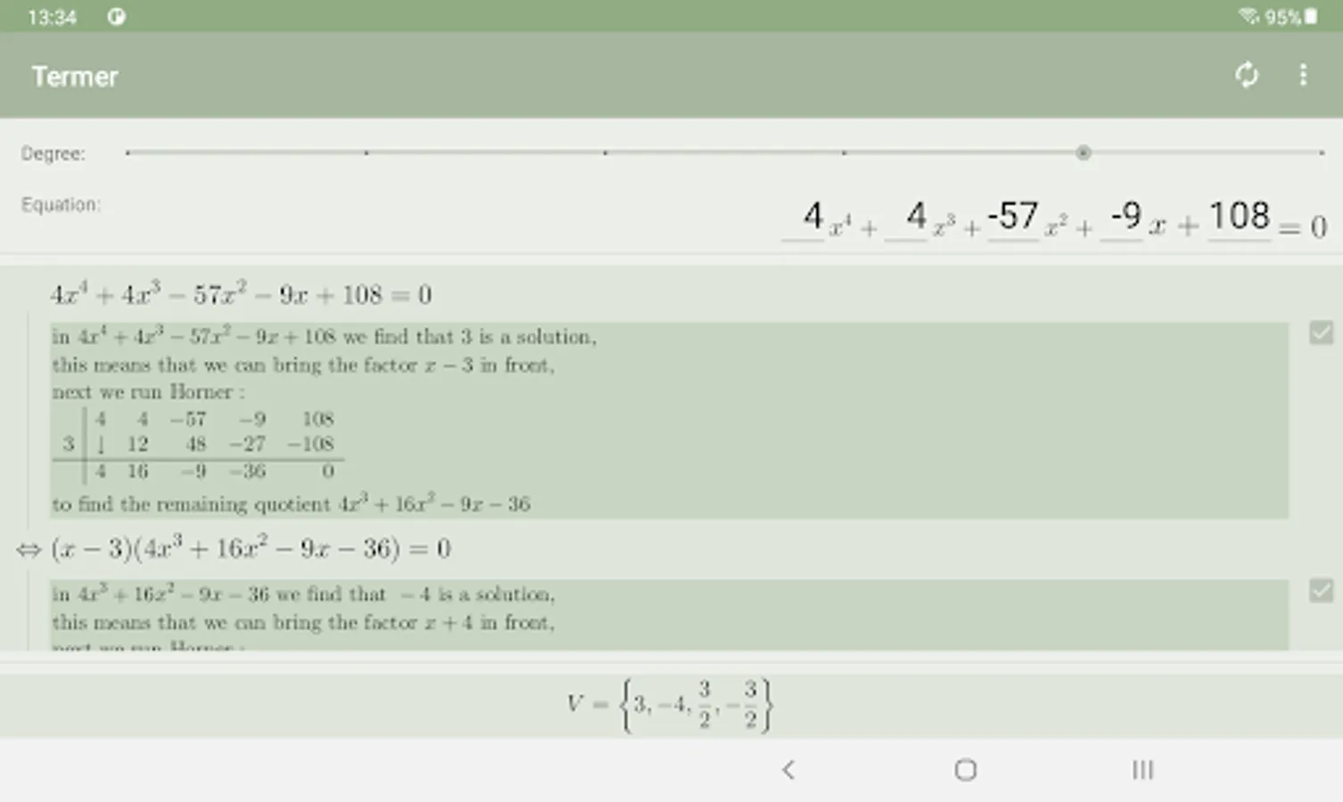 This tool also shows the explication for each step. Handy tool when learning to solve polynomial equations.