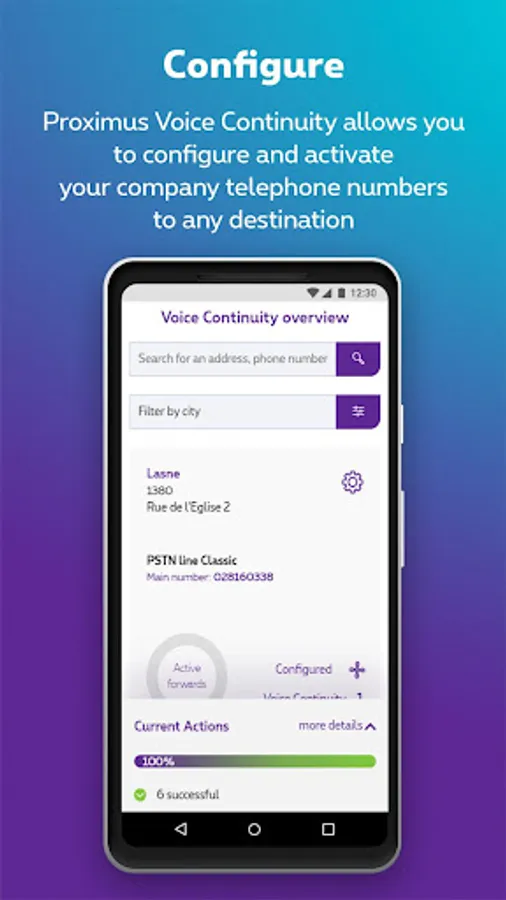 The Voice Continuity Solution is a backup solution for your Proximus VOIP telephony , allowing your organization to receive calls that would normally be lost during a disaster without having to adapt its existing infrastructure.