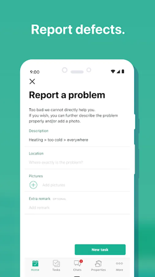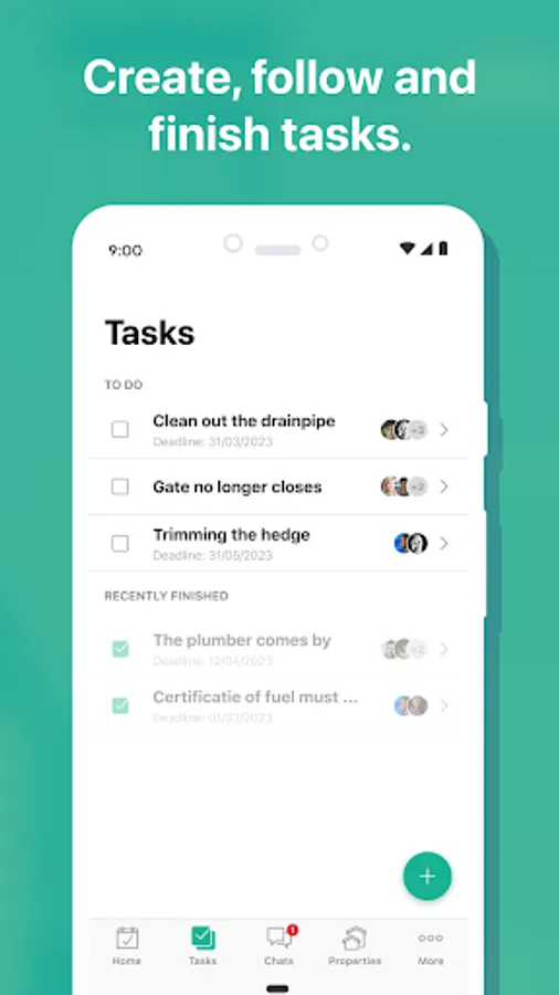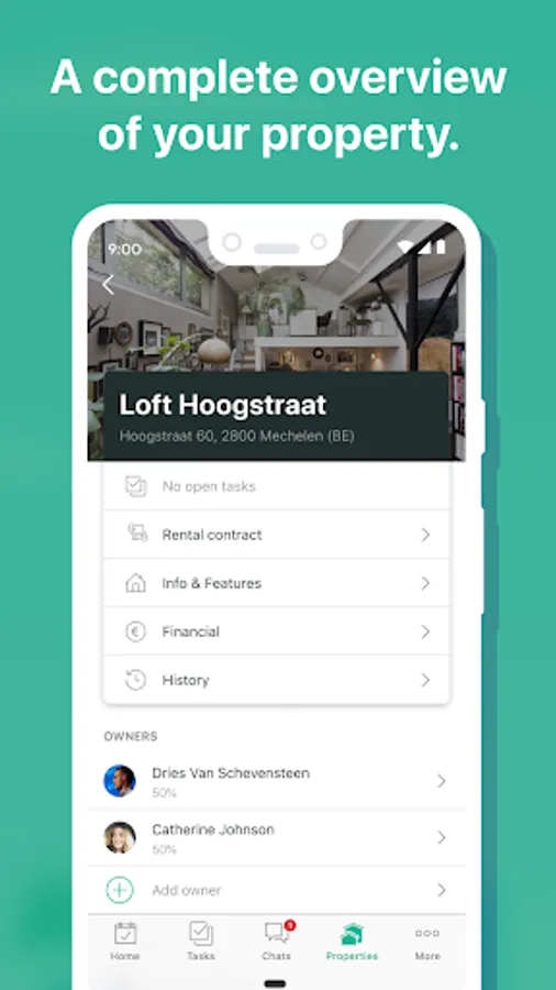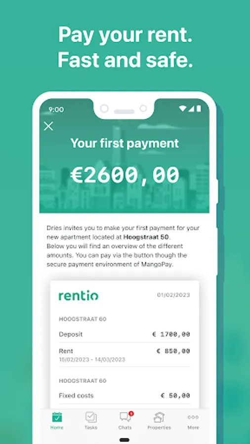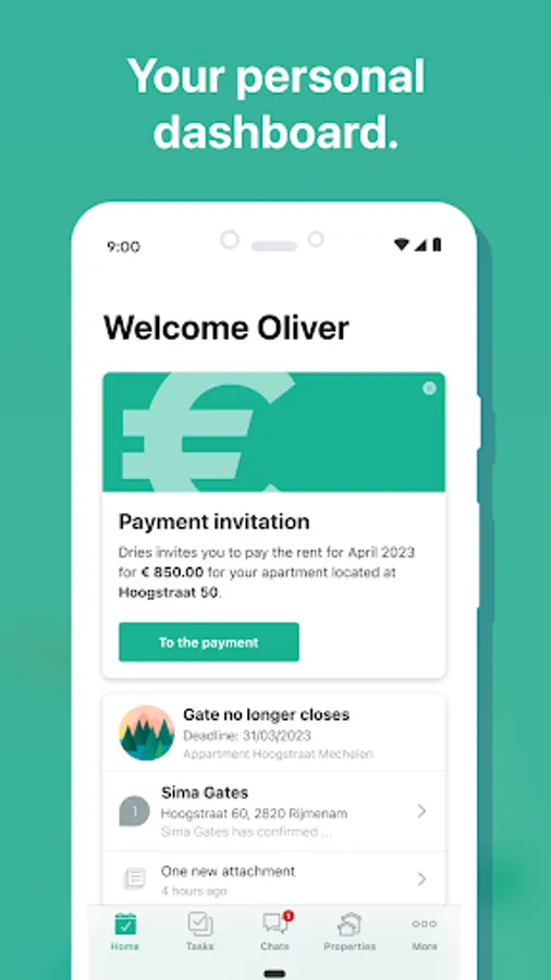 As a tenant you can easily pay your rent, report problems with photos and descriptions, follow tasks of the manager or owner, chat with co-tenants and owner, view your contract, etc. In short, you can do everything that is important in your home with your smartphone.