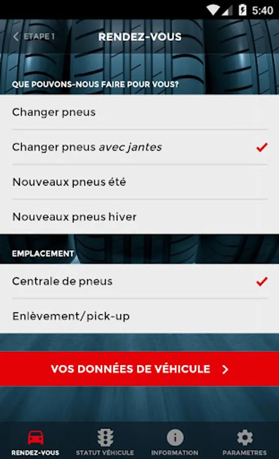 With the app Alain Tires, you can make an appointment online and see when your vehicle is completed.