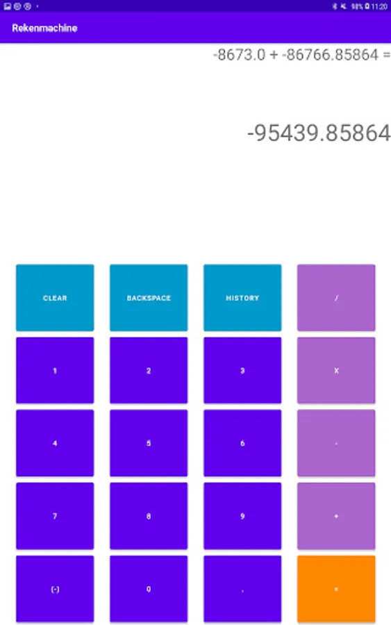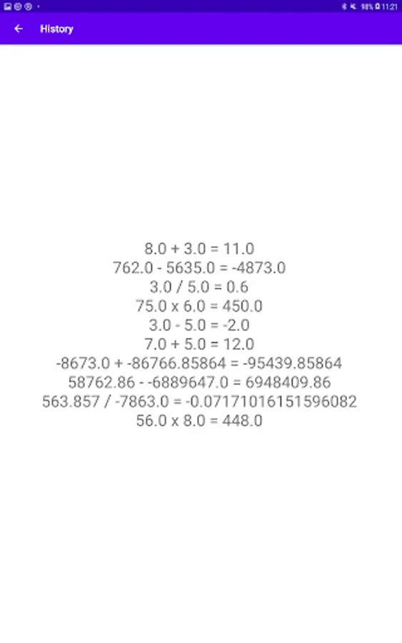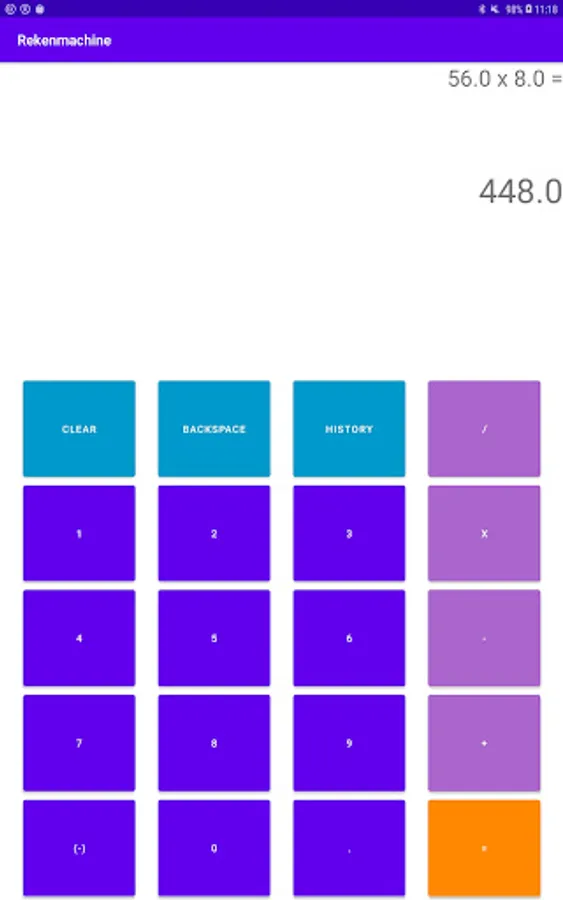 Eenvoudige rekenmachine met basisbewerkingen en geschiedenis.