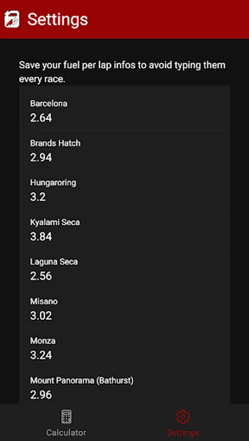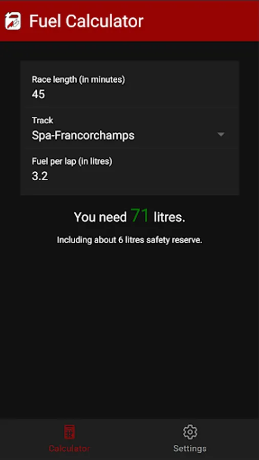 Quickly and easily calculate the fuel you need for the race.