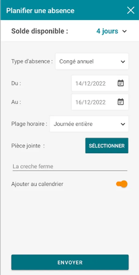Easily make your absence requests and be notified when your requests are accepted! As a manager, you can also validate your agents' absence requests.
