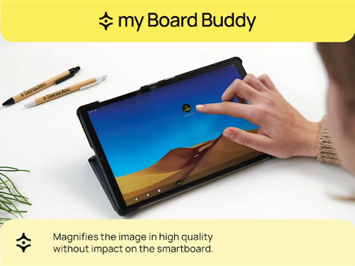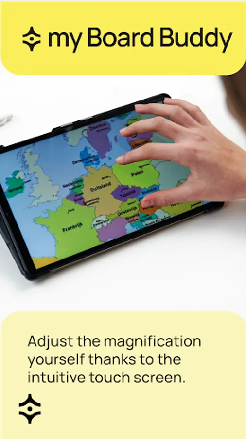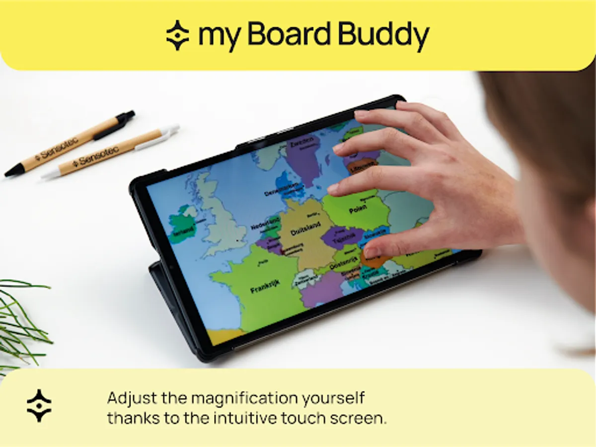 With the ‘my Board Buddy’ app, you bring the image of the digital board or presentation screen up close. This app is primarily intended for use on tablet. Thus, visually impaired students or staff can also follow a presentation visually.