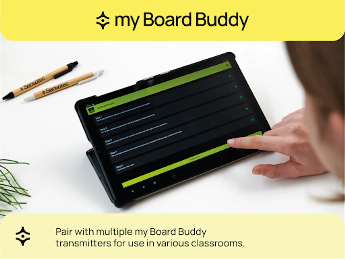 - Pairs with multiple ‘my Board Buddy’ transmitters for use in different (class)rooms