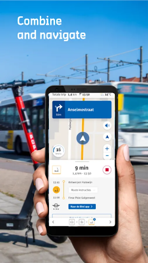 You can combine and navigate with bicycle, shared mobility, car and public transport to and through Antwerp. You will receive real-time updates about your route and info about the low-emission zone, road works and events. You can personalize, filter and sort routes according to your preferences such as time and price. You will discover everything you need to know about parking, shared cars, bicycles, scooters and road works in Antwerp on the dynamic mobility map.