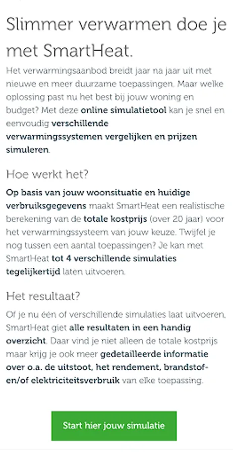 The perfect heating system for your needs? Find your match with SmartHeat, an independent simulation tool that compares prices, emissions, returns and fuel and electricity consumption to help you make the right decision quickly and confidently.
