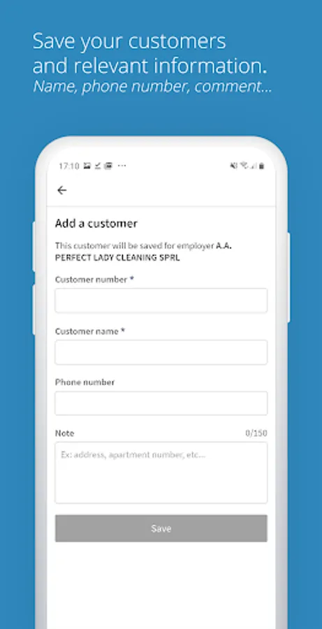 For your convenience, you can register your customers and their information directly in your application, such as their name, phone number or a comment.