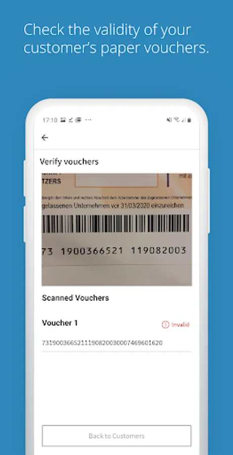 Don't leave with invalid paper cheques, you can check their validity directly via the "scanner". This function allows you to scan the paper service voucher via your camera and check whether it is valid or not.
