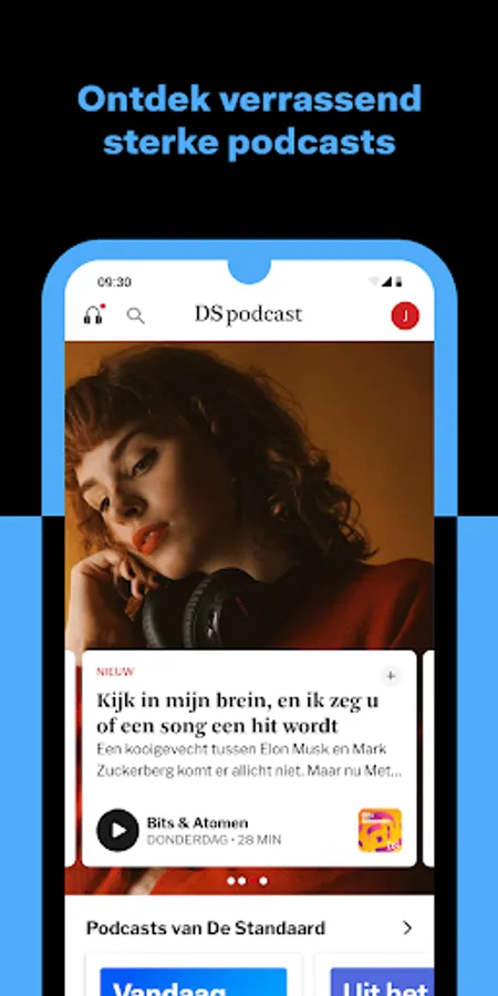 Of course you will find the podcasts that De Standaard produces itself in the app: the daily news podcast DS Today, the weekly podcasts such as Bits & Atomen and Radar and special journalistic series.