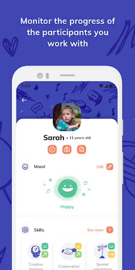 2. Track mood and monitor skills: log the mood and evaluate different skills of your participants.