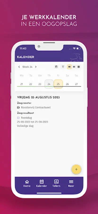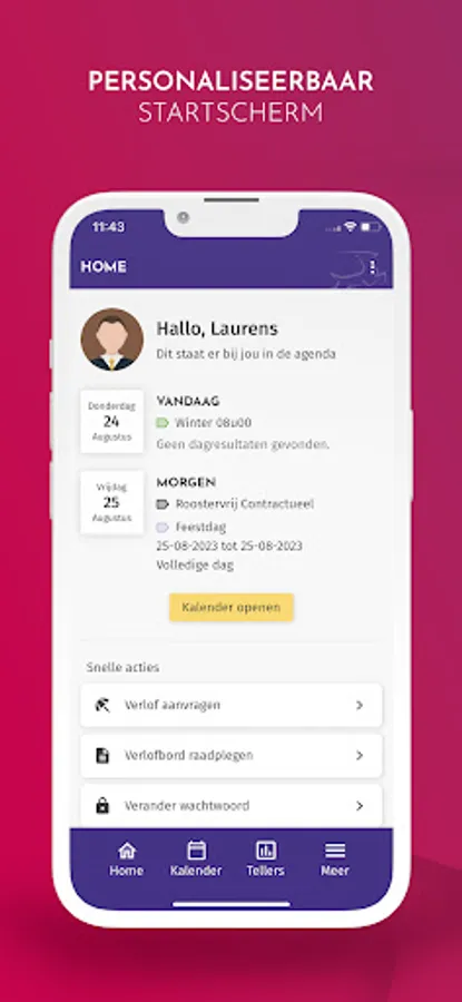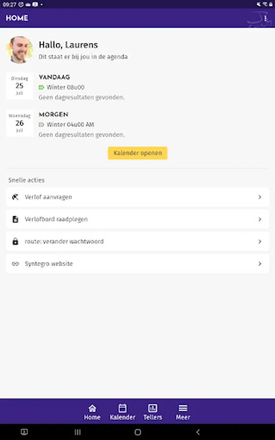 With Syntegro's workforce management App, employees are always well informed and involved in their work arrangements. They have insight into their performance, planning, leave balances and more. They can register working hours, tasks performed, commutes, etc. themselves. They can also easily apply for leave, upload a certificate or expense report via the App. Managers, HR employees and planners mainly use the App for approving leave and other requests.