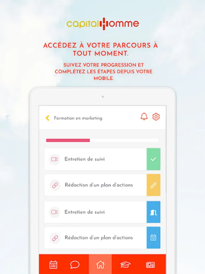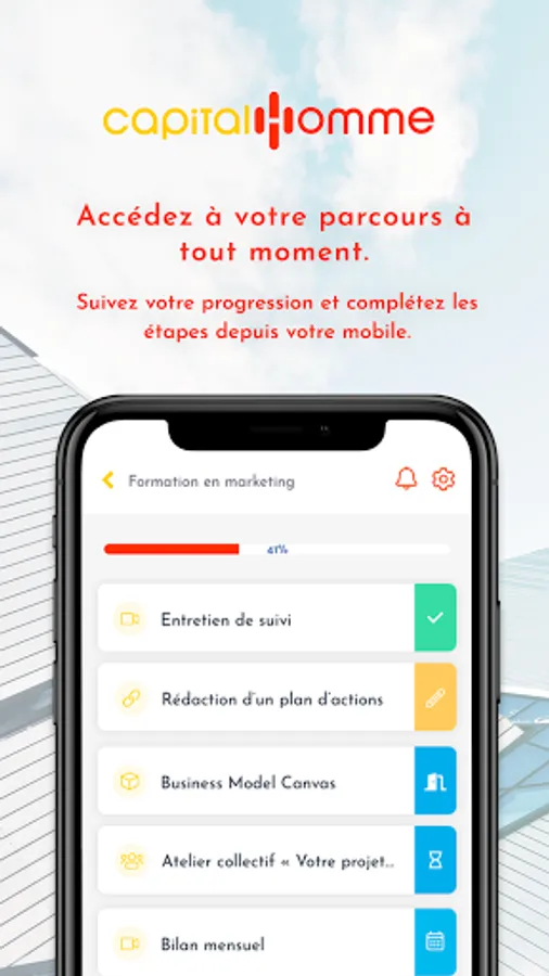 Our coaches and experts are there to accelerate your professional development and develop your skills. Whether you are an employee, self-employed, business owner, managers, coaches, HR specialist, Capital Homme is the application that helps you succeed!