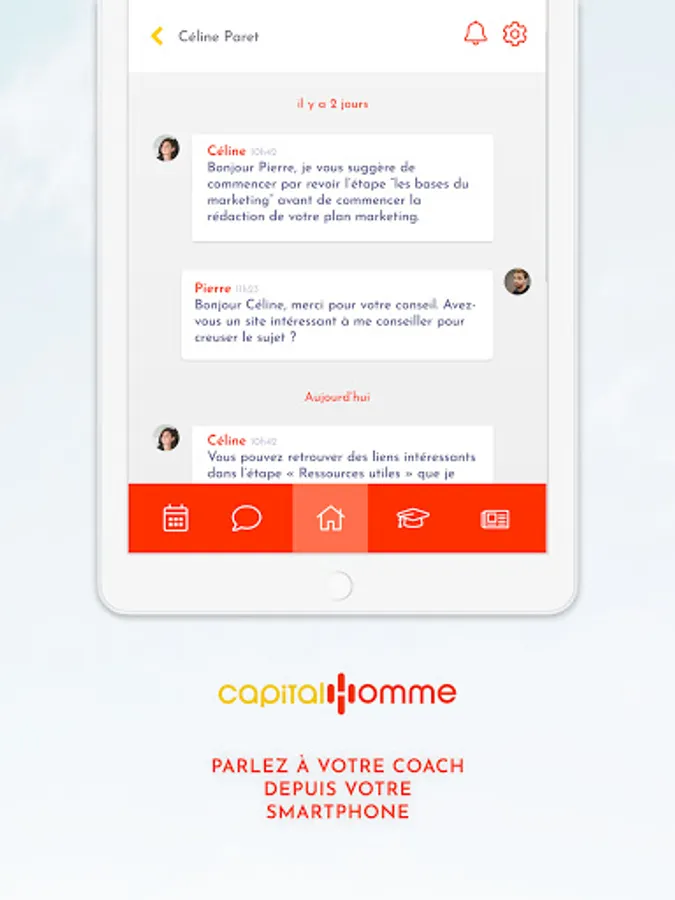 Capital Homme gives you access to a resource center (tools, webinar, thematic content, chat) and brings you into a learning community: the tribe! You are directly coached by your referent coach from your smartphone.