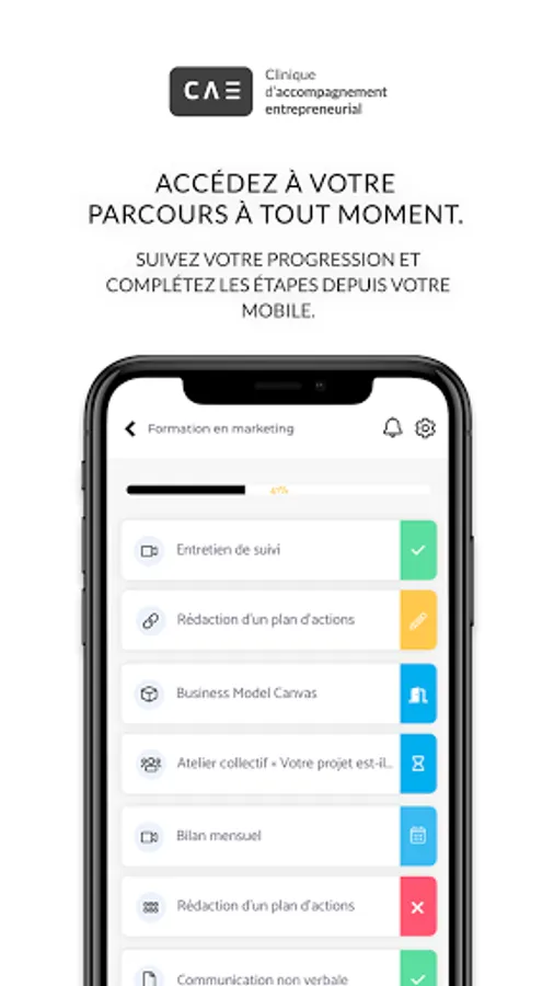 The CAECQ application will help you as an entrepreneur accompanied by the entrepreneurial coaching clinic to determine your objectives, find the right actions to do and assist you in the growth of your business.