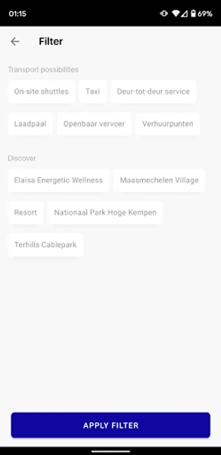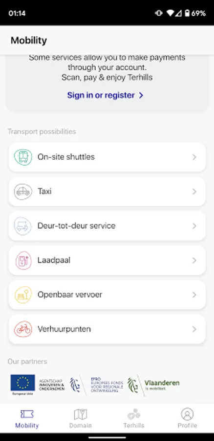 You can use the Terhills app to discover the various mobility possibilities on the site, such as the electric shuttle bus. The app also keeps you informed of events taking place at Terhills.