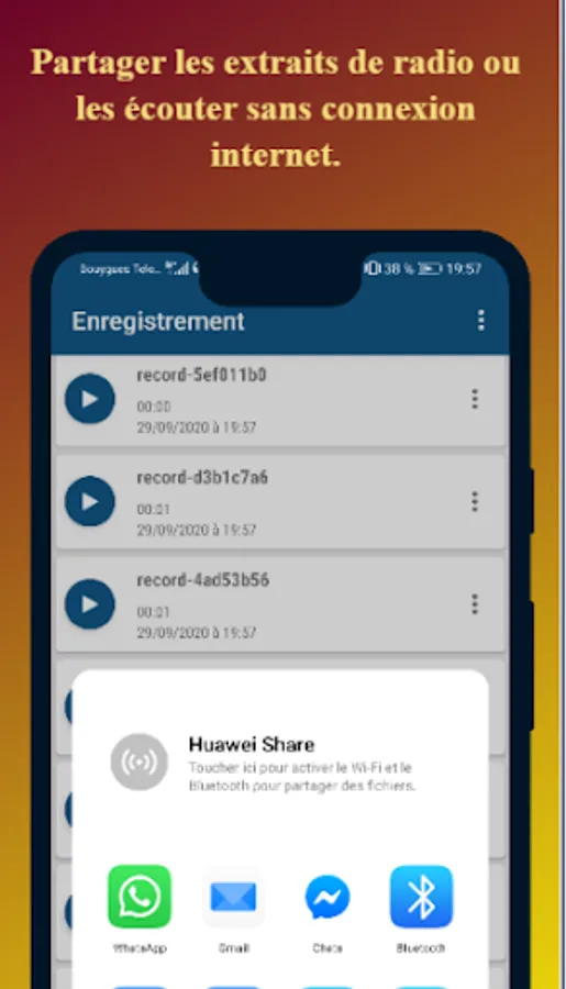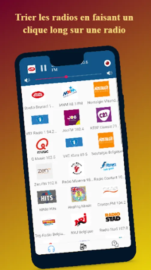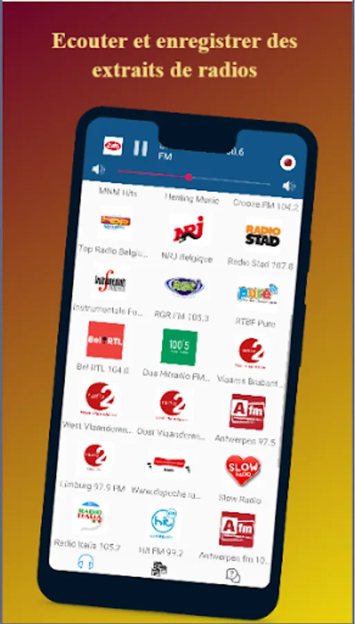 With Radio Belgium, you can listen to the best live radio stations and follow your favorite shows for free. You can record the broadcast radios and re-listen to the recordings without having an internet connection.