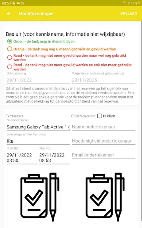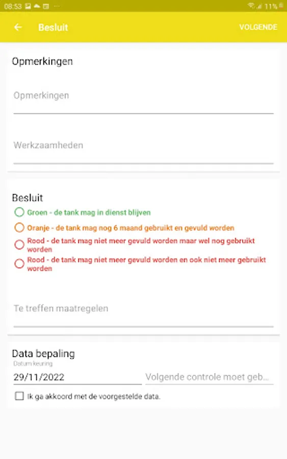 This app can be used to create a certificate with tank checks. If you want more functionalities you can always link them with InstaMobile.