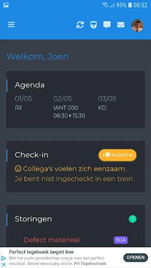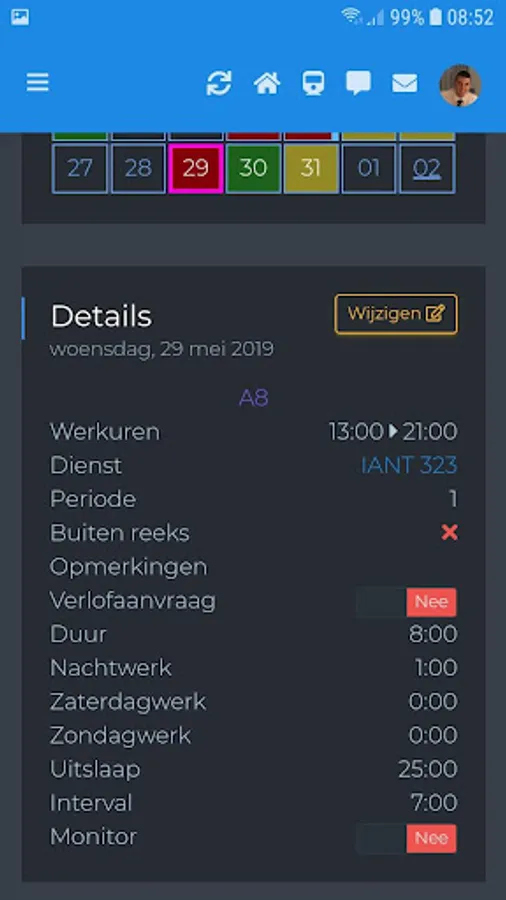 The app treinbestuurder.be you can easily manage your calendar specially made for the driver at the NMBS.