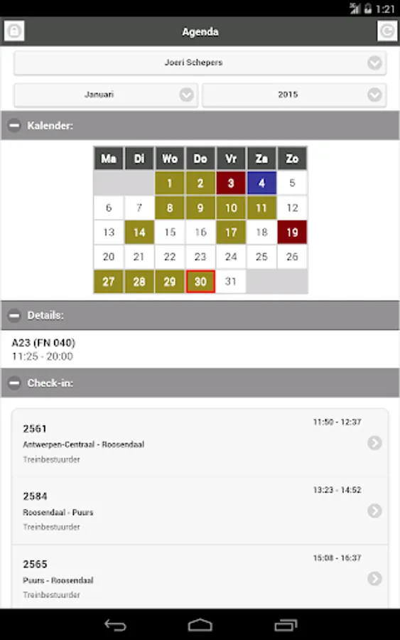 With this application you can view the calendar of SNCB personnel who have shared their calendar with you.