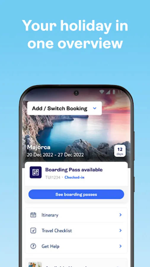 Have you already booked your TUI fly flight? Then add it to the TUI fly app and enjoy the functionalities our service offers. This way you have all your flights within easy reach and you have all of your flight details in a nice overview. You can easily check in online and download your boarding passes via the app. They are always available, even when you are offline!