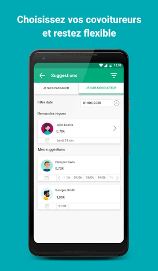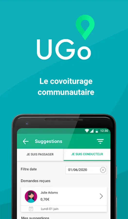 Just fill in one of your trips in an ad and UGo will find you compatible carpoolers! When a compatible carpooler has been detected, you are notified by email or through the UGo app. You just have to choose who you want to travel with!