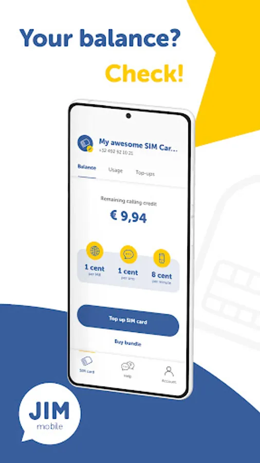 You can use the JIM Mobile app with your JIM Mobile prepaid SIM card or subscription. Check your usage and bundles in detail!
