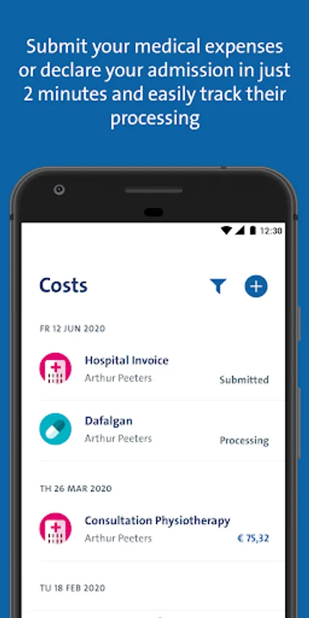 - Submit medical expenses or declare an admission in just 2 minutes!