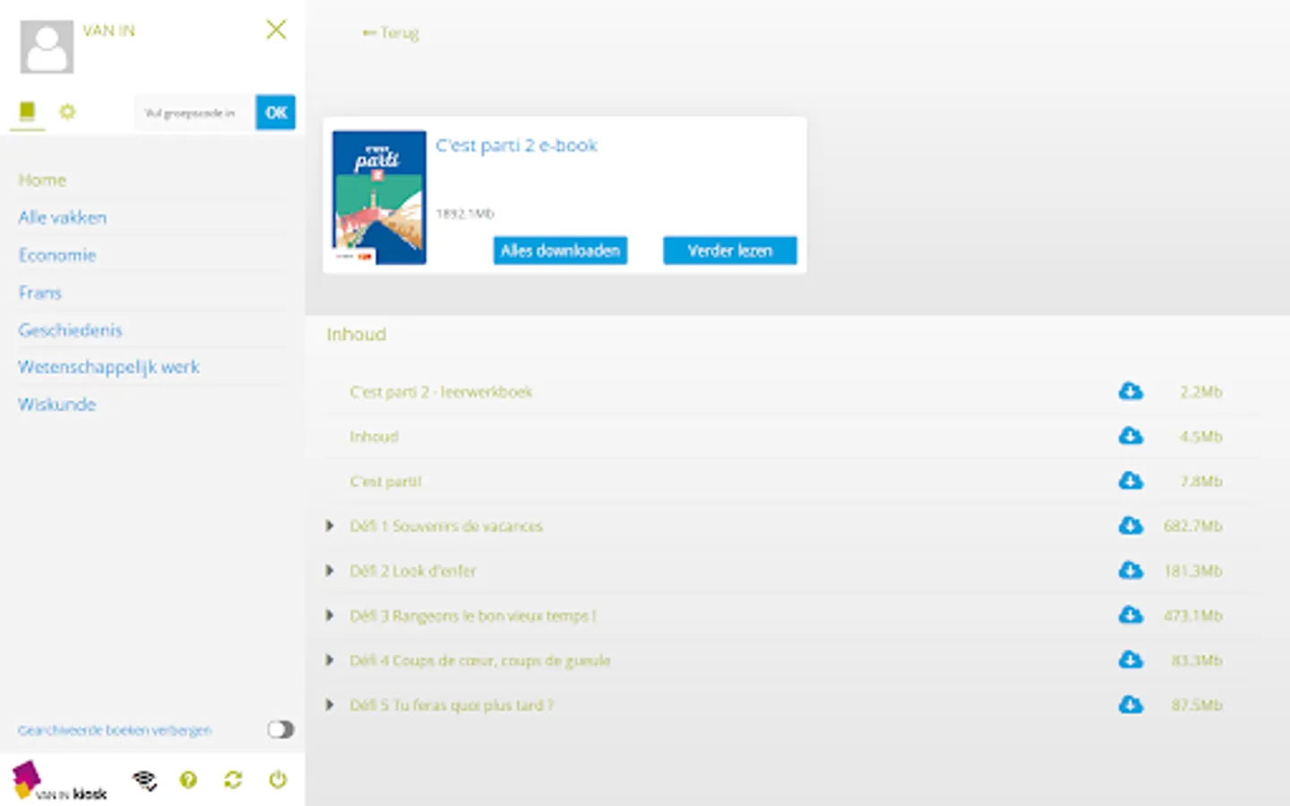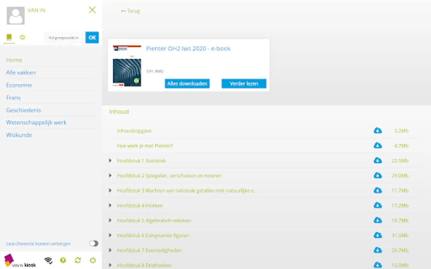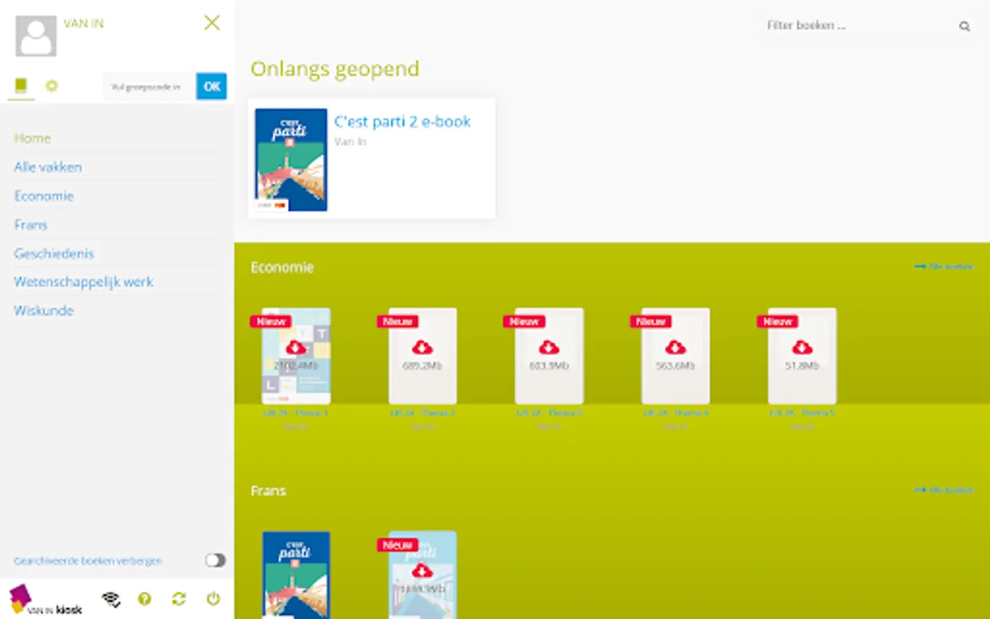 With the VAN IN kiosk app you can call up the e-books of Uitgeverij VAN IN and display them on your bookshelf.